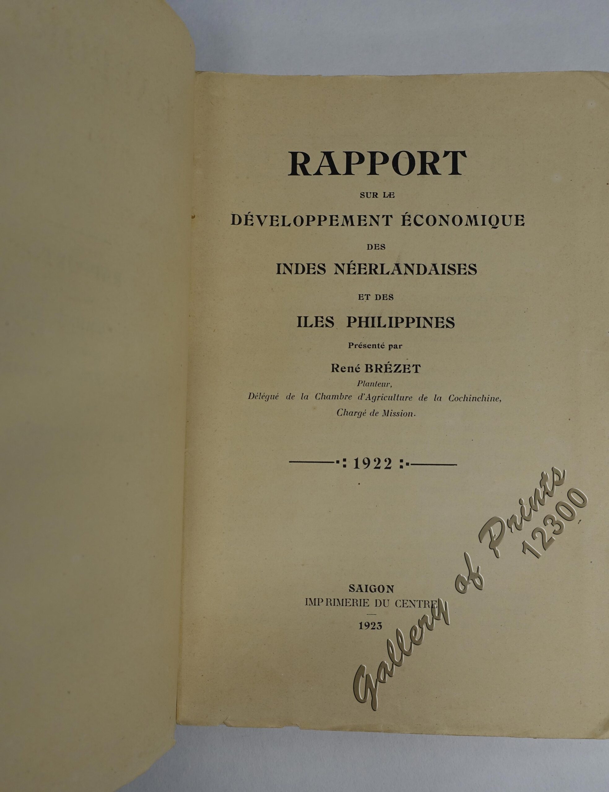 214 pp., 8vo, original brown/green wrappers, 48 photographic plates and 2 large folding maps of the Philippines and the Dutch East Indies; several pages still uncut. EXTREMELY RARE.