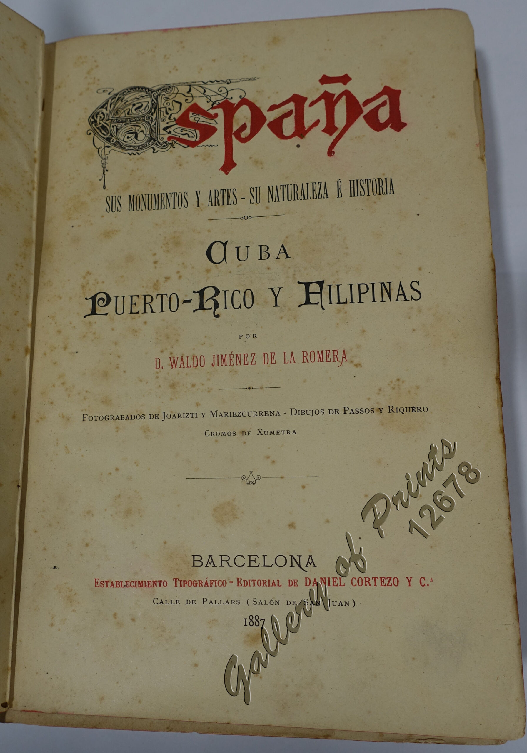![EspaƱa, sus monumentos y artes, su naturaleza e historia. Cuba, Puerto Rico y Filipinas. [Spain: its monuments and arts, its nature and history. Cuba, Puerto Rico and the Philippines] - Image 3](https://galleryofprints.shop/wp-content/uploads/2024/05/jo12678-Romera-1887-EspaƱa-sus-monumentos-y-artes-su-naturaleza-e-historia-titlepage-scaled.jpg)