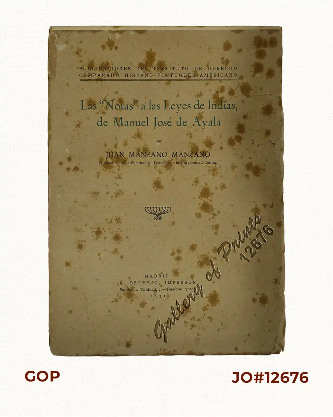 ![Las "Notas" a las Leyes de Indias, de Manuel José de Ayala [The "Notes" to the Laws of the Indies, by Manuel Jose de Ayala]](https://galleryofprints.shop/wp-content/uploads/2024/04/JO12676-Manzano-1935-Las-Notas-a-las-Leyes-de-Indias-front-scaled-1.webp)