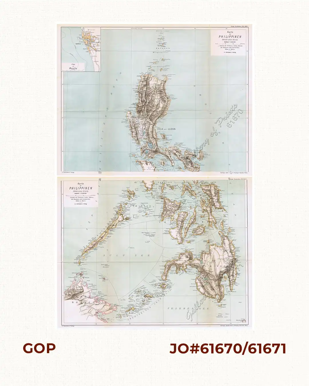 RARE and virtually unknown large maps of the Philippines just before the American take-over, original-colour lithographs.