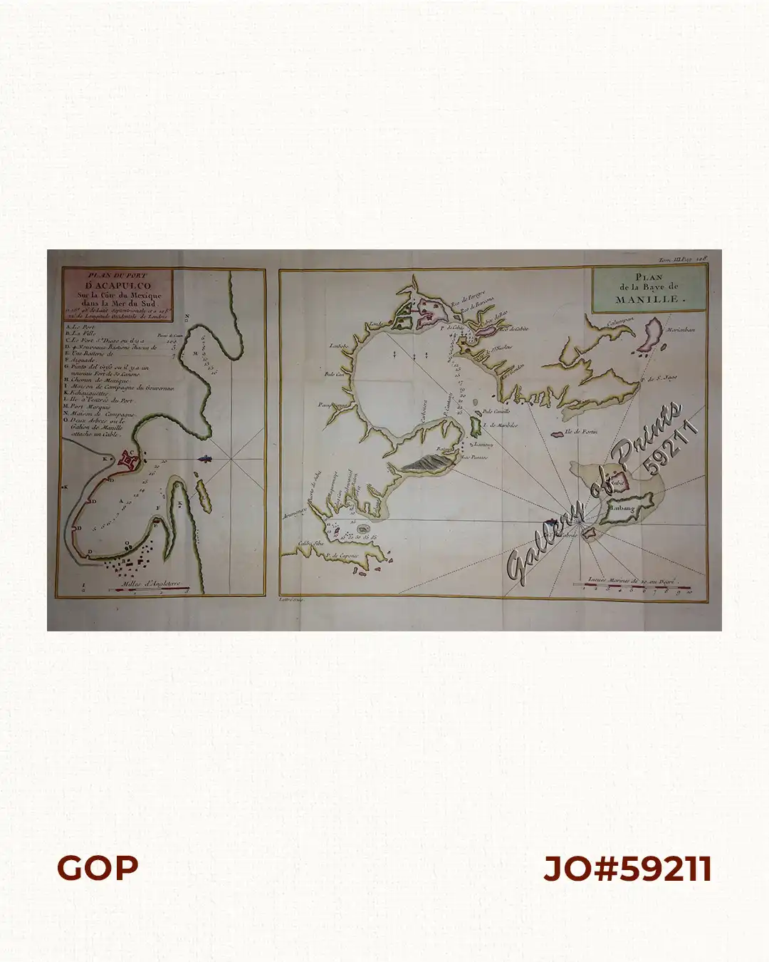 hand-coloured copper engraving. Map from Lord George Anson’s ‘Voyage Autour du Monde’, 2nd French edition.