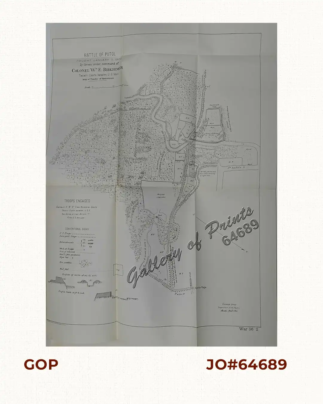 Battle of Putol fought January 7, 1900 By forces under command of Colonel Wm E. Birkhimer Twenty-Eight Infantry, U. S. Vols. Map of Theater of Operations. quantity