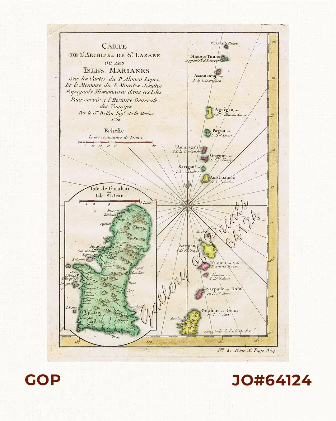 ![Carte de l'Archipel de St. Lazare ou Les Isles Marianes. [inset:] Isle de Guahan ou St. Jean. [Map of the St. Lazarus or Marianas Islands] [Island of Guam or St. John]](https://galleryofprints.shop/wp-content/uploads/2019/01/JO64124c-Bellin-1752-Carte-de-lArchipel-de-St.webp)
