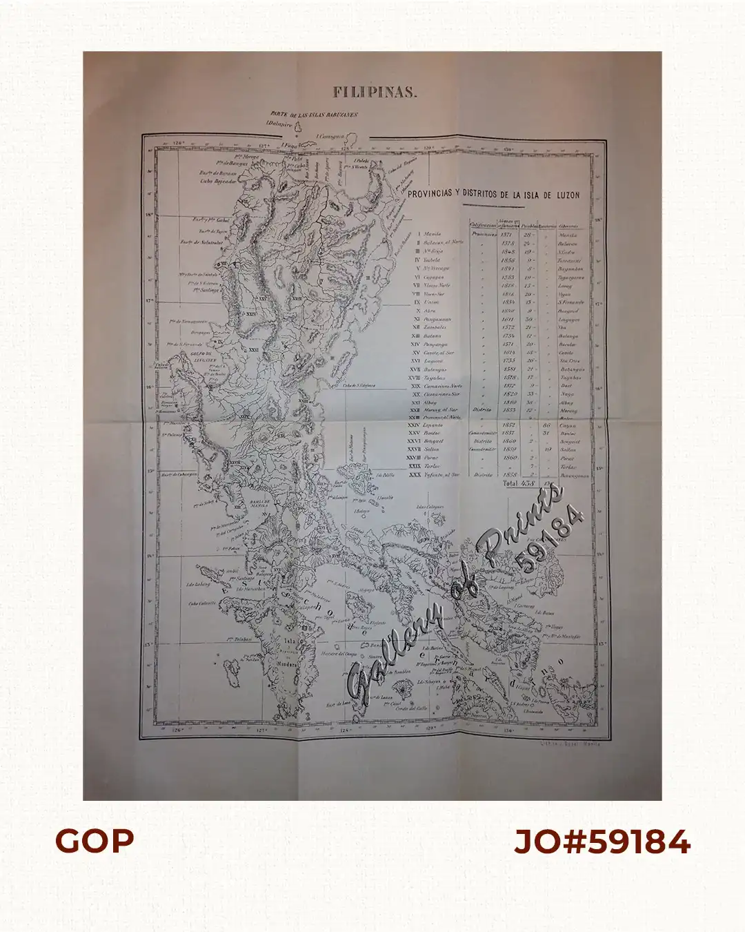 lithograph. VERY RARE only edition map of Luzon with many interesting details, from “Historia geográfica, geológica y estadÃstÃca de Filipinas”.