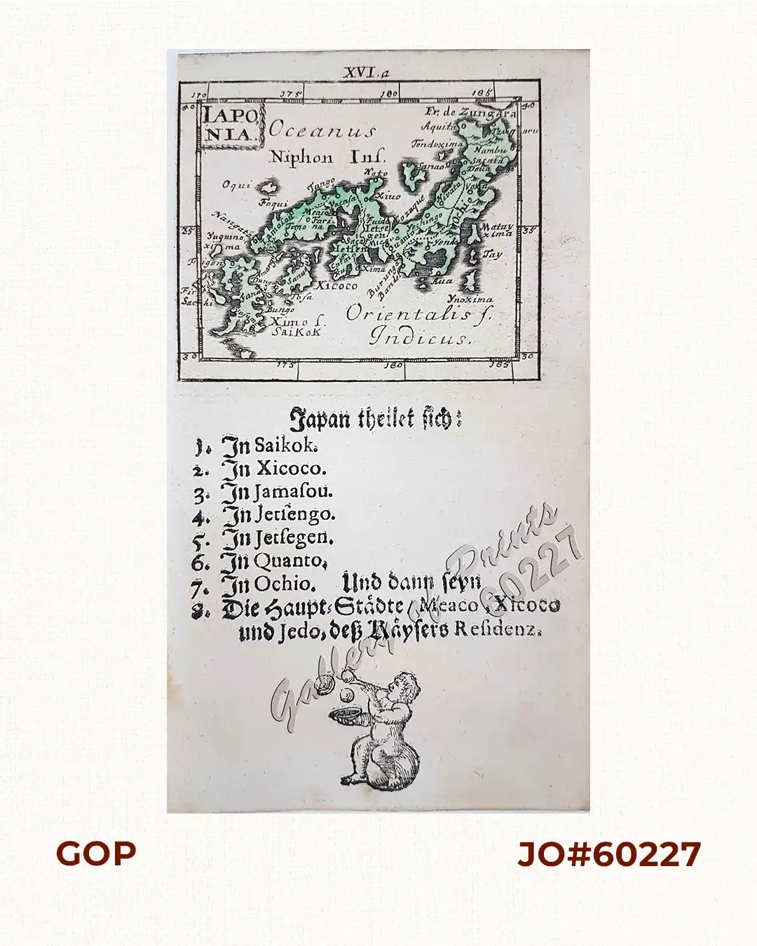 EXTREMELY RARE map from ‘Neu-aussgefertigter Kleiner Atlas…’. This edition with short text only but with vignette at bottom page: with cartouche in upper left of map “Iaponia”.