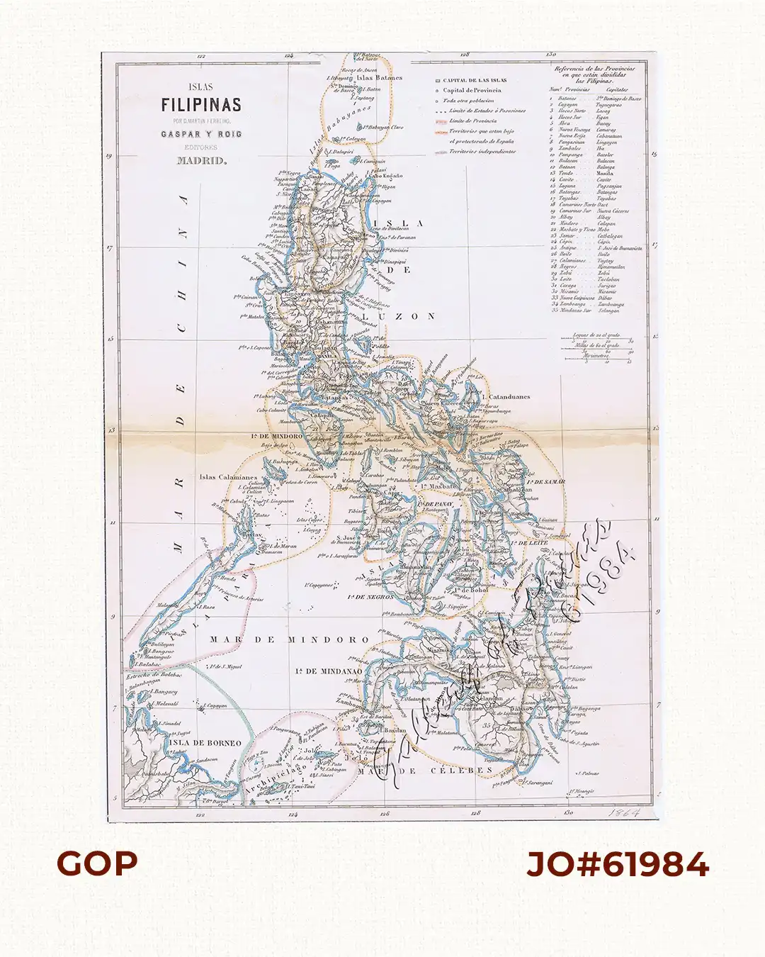original outline colour steel engraving. RARE map from the “Atlas geográfico de España. Islas adyacentes y posesiones Españolas de ultramar.”