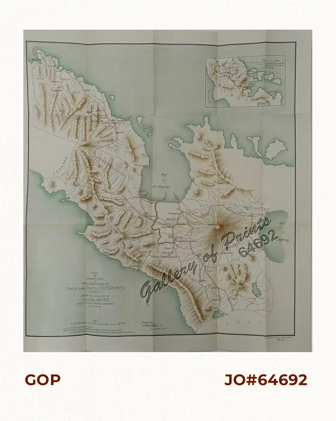 Map Showing Operations in the Provinces of North and South Camarines Luzon. P.I. under the direction of Maj. Gen. Bates. (Bell’s Exfeditionary Brigade) Feb’y and Mar. 1900. inset: [Albay]