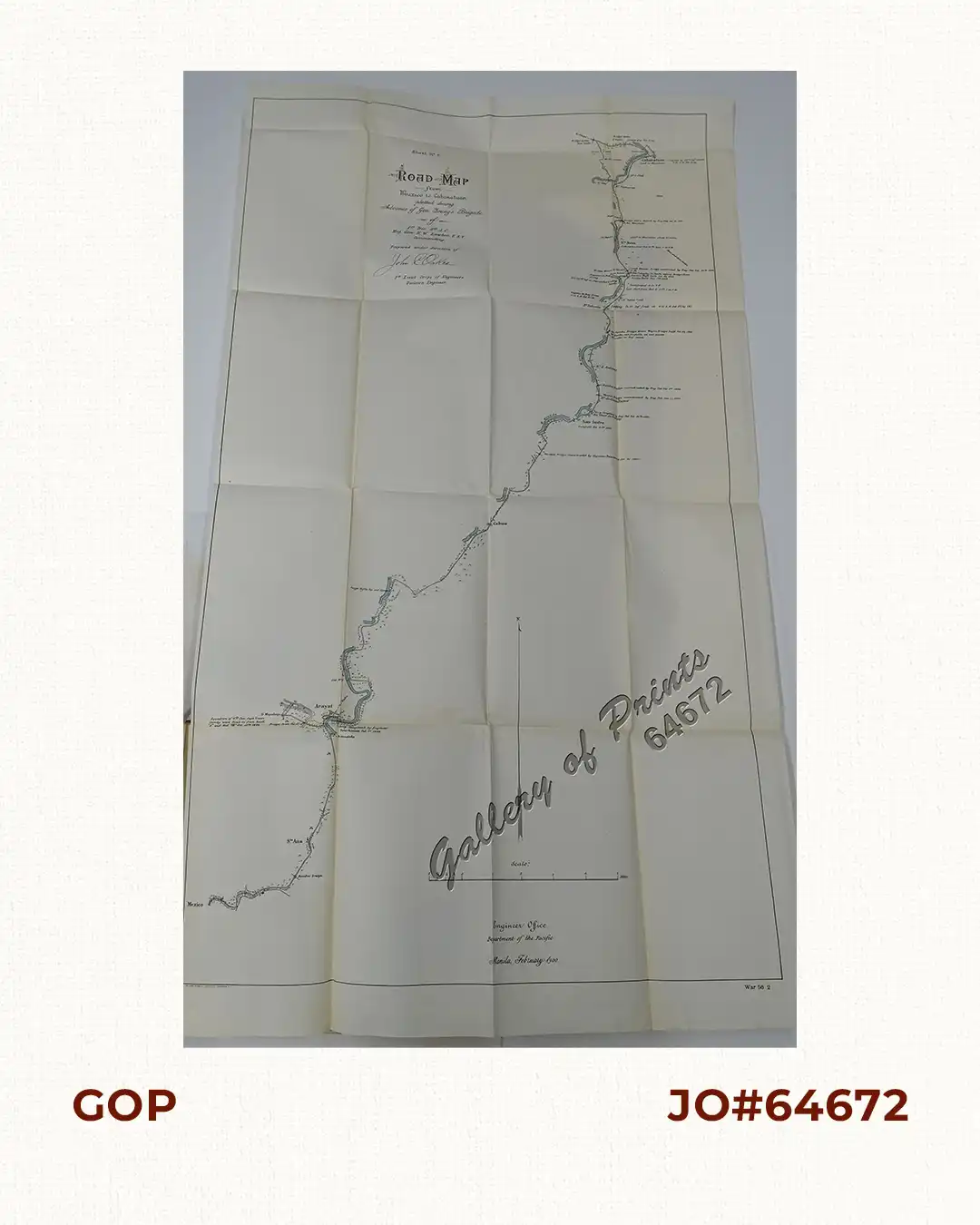 Sheet No. 1. Road Map from Mexico to Cabanatuan plotted during Advance of Gen. Young’s Brigade of 1st Div. 8th A. C. Maj. Gen. H. W. Lawton U. S. V. Commanding. Prepared under direction of John C. Oakes. 1st Lieut Corps of Engineers Division Engineer.