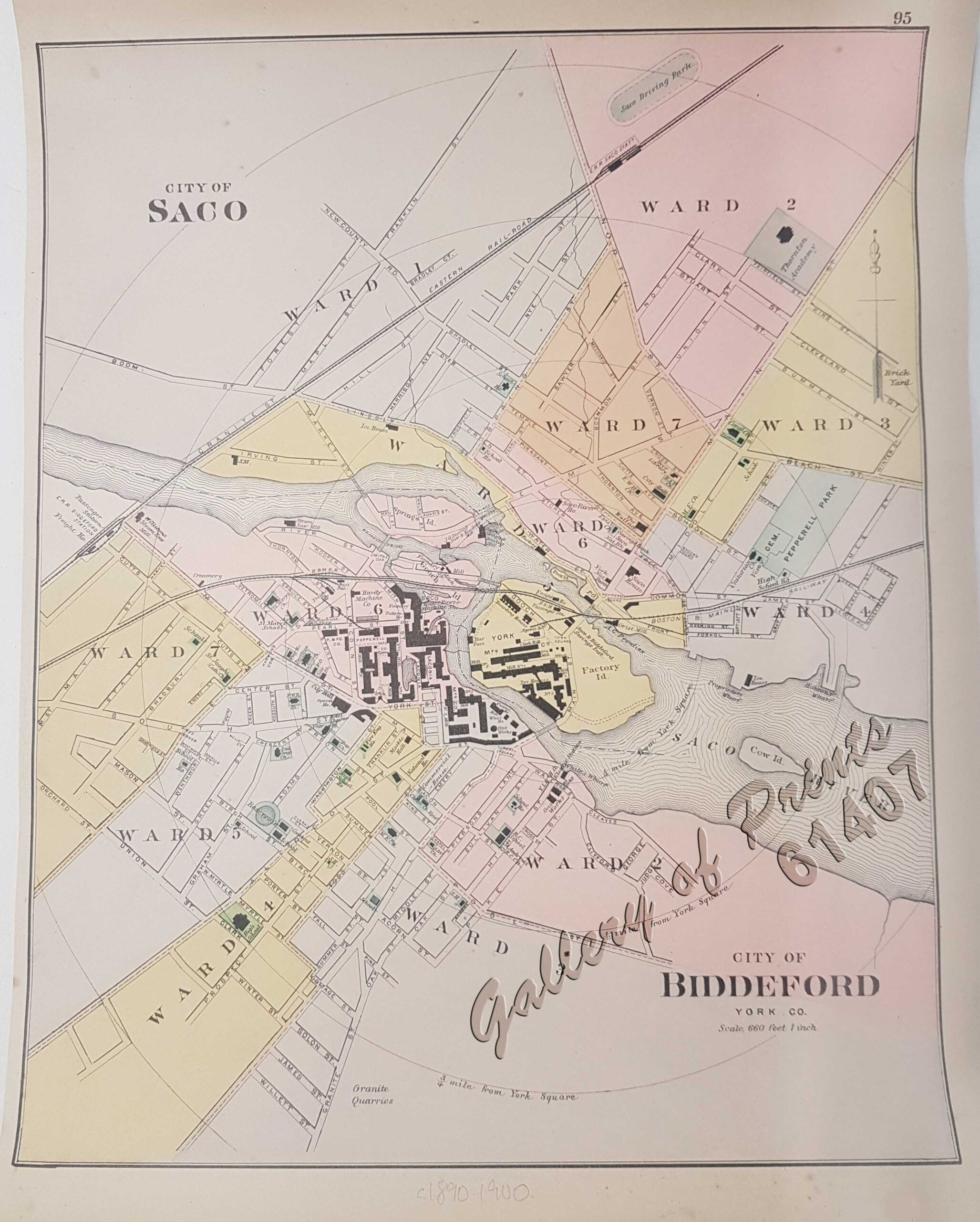 original-colour lithograph, verso: City of Saco / City of Biddeford.
