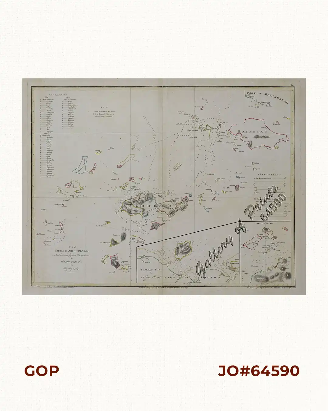 ![The Sooloo Archipelago Laid down chiefly from Observations in 1761, 1762, 1763, & 1764 [insets]: 1) Toolyan Bay, by Mr. James Rennel [sic]. 2) Sooloo Road [by James Rennel [sic] (?)]](https://galleryofprints.shop/wp-content/uploads/2024/11/JO64590c-Dalrymple-1771-The-Sooloo-Archipelago.webp)