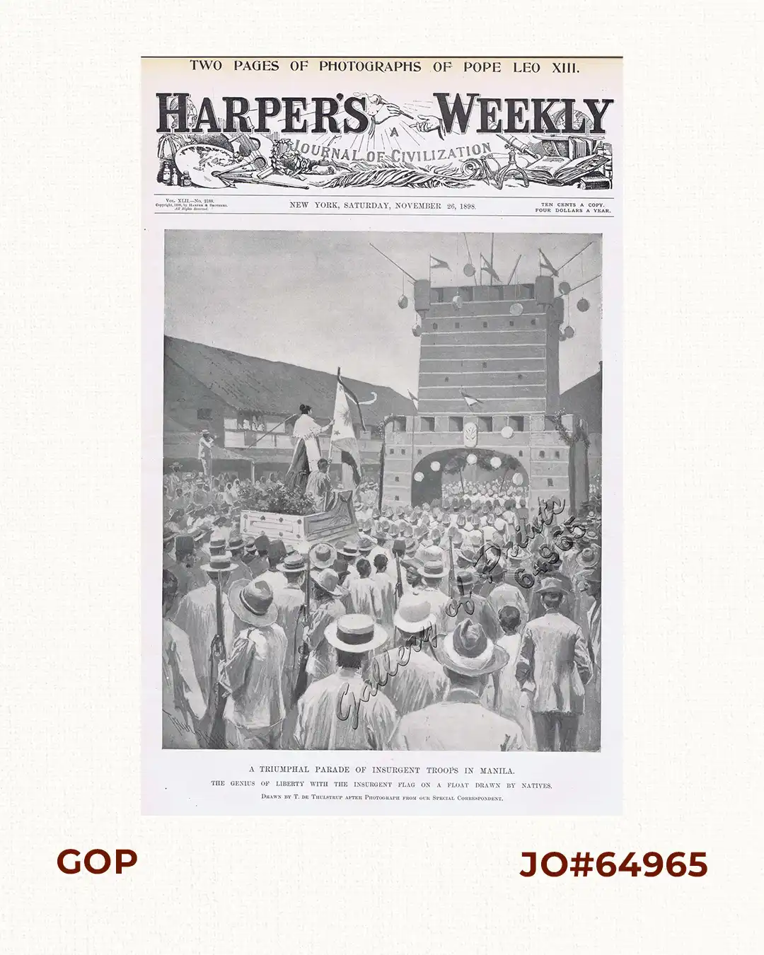 wood engraving [after photos]. Frontispiece from ‘Harper’s Weekly’; vol. 42, no.2188.