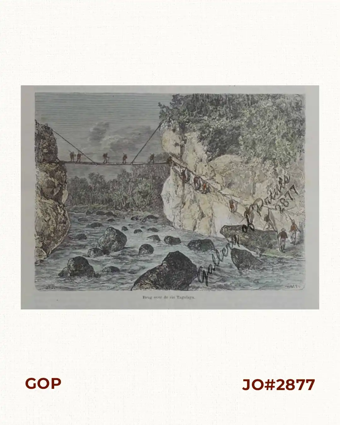 hand-coloured wood engraving. RARE Dutch edition view from ‘Reis naar de Philippijnen’.