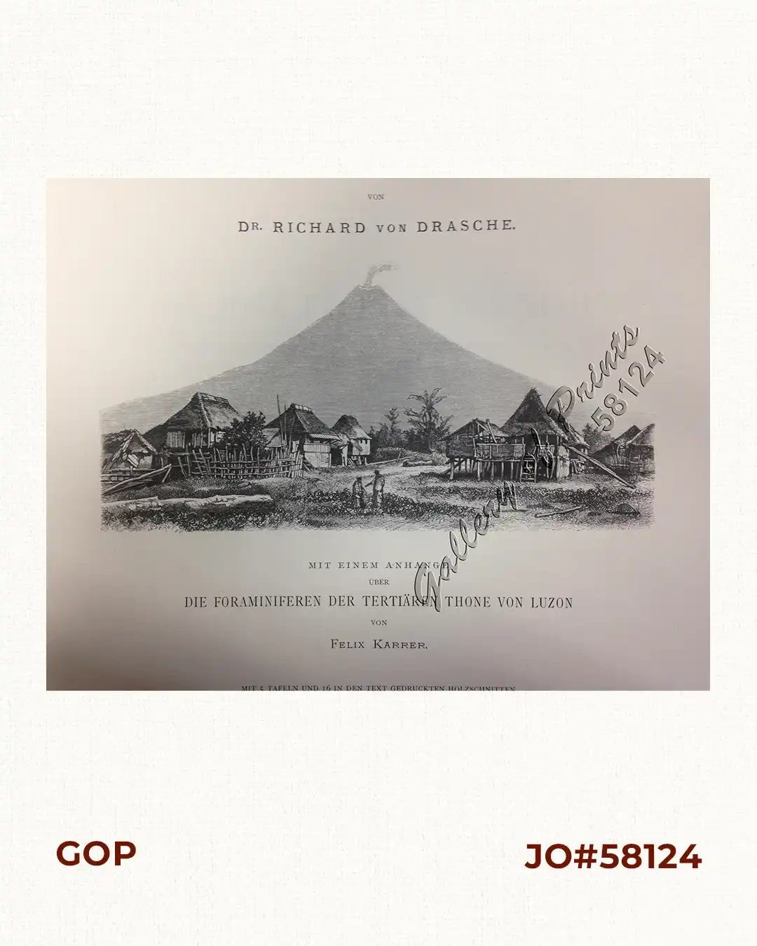 attractive wood engraving on white background with a view of the “perfect cone” volcano Mount Mayon in Bicol, Southern Luzon.