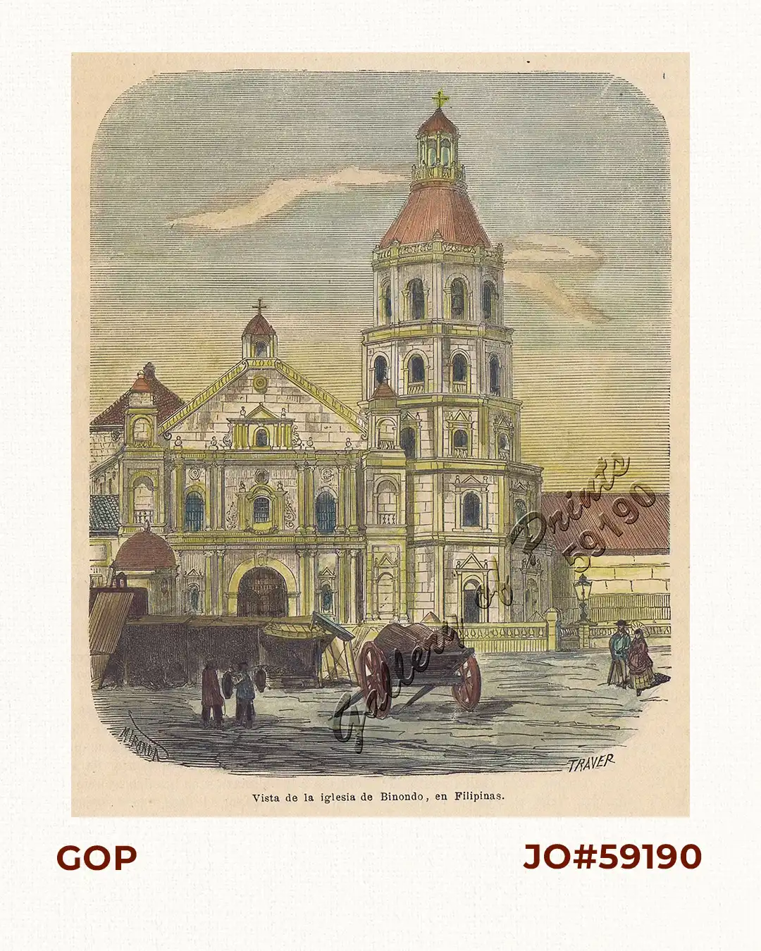 hand-coloured engraving view from ‘Cronica de las Islas Filipinas’. RARE.