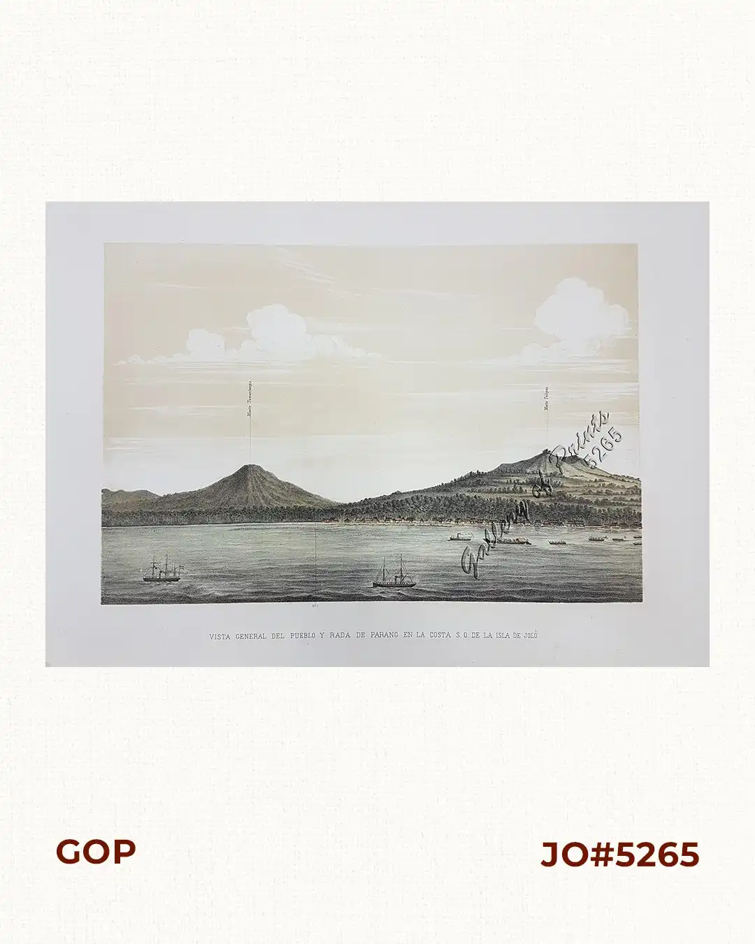 RARE hand-coloured lithograph. View from “L’Expedicion á Joló 1876 Bocetos del cronista del diario de Manila”.