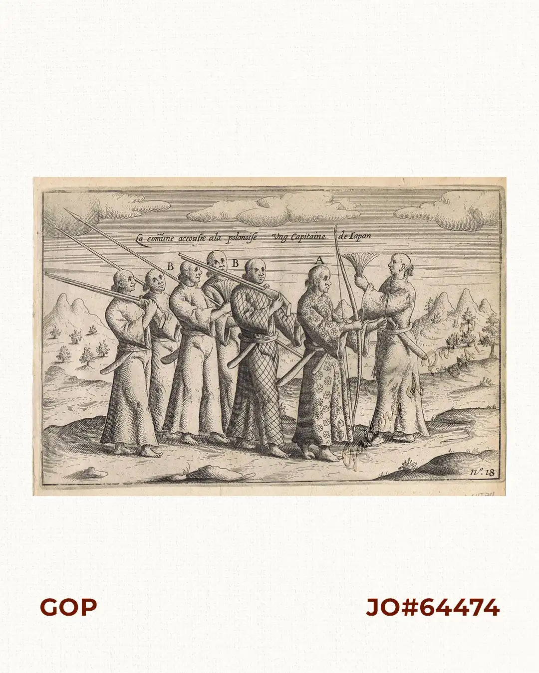 ![La comune accoutre ala polonoise. Ung Capitaine de Iapan [Clothes of a Japanese nobleman and ordinary Japanese men dressed like Polish] A. gentleman with bow and arrow and heavy dress. B. others armed with muskets.]](https://galleryofprints.shop/wp-content/uploads/2024/05/JO64474-van-Noort-1646-La-comune-accoutre-ala-polonoise.webp)