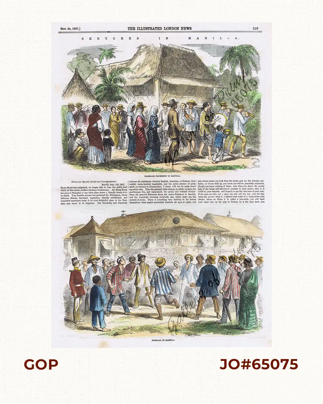 hand-coloured wood engraving view from ‘The Illustrated London News’, Nov. 28,1857 issue.