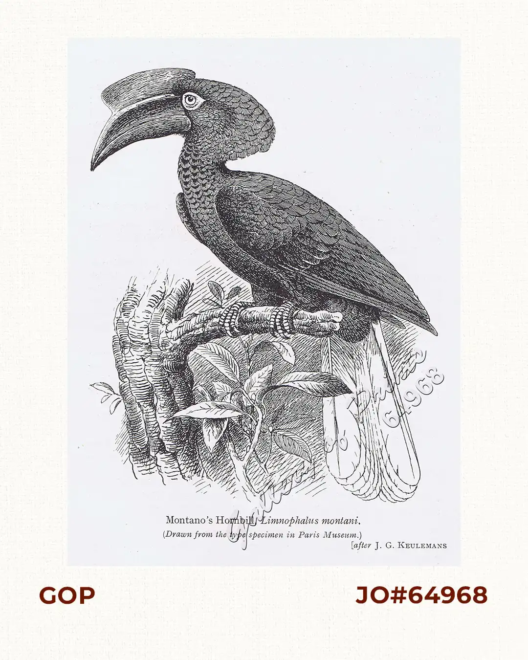 Montano’s Hornbill, Limnophalus montani. (Drawn from the type specimen in Paris Museum.)