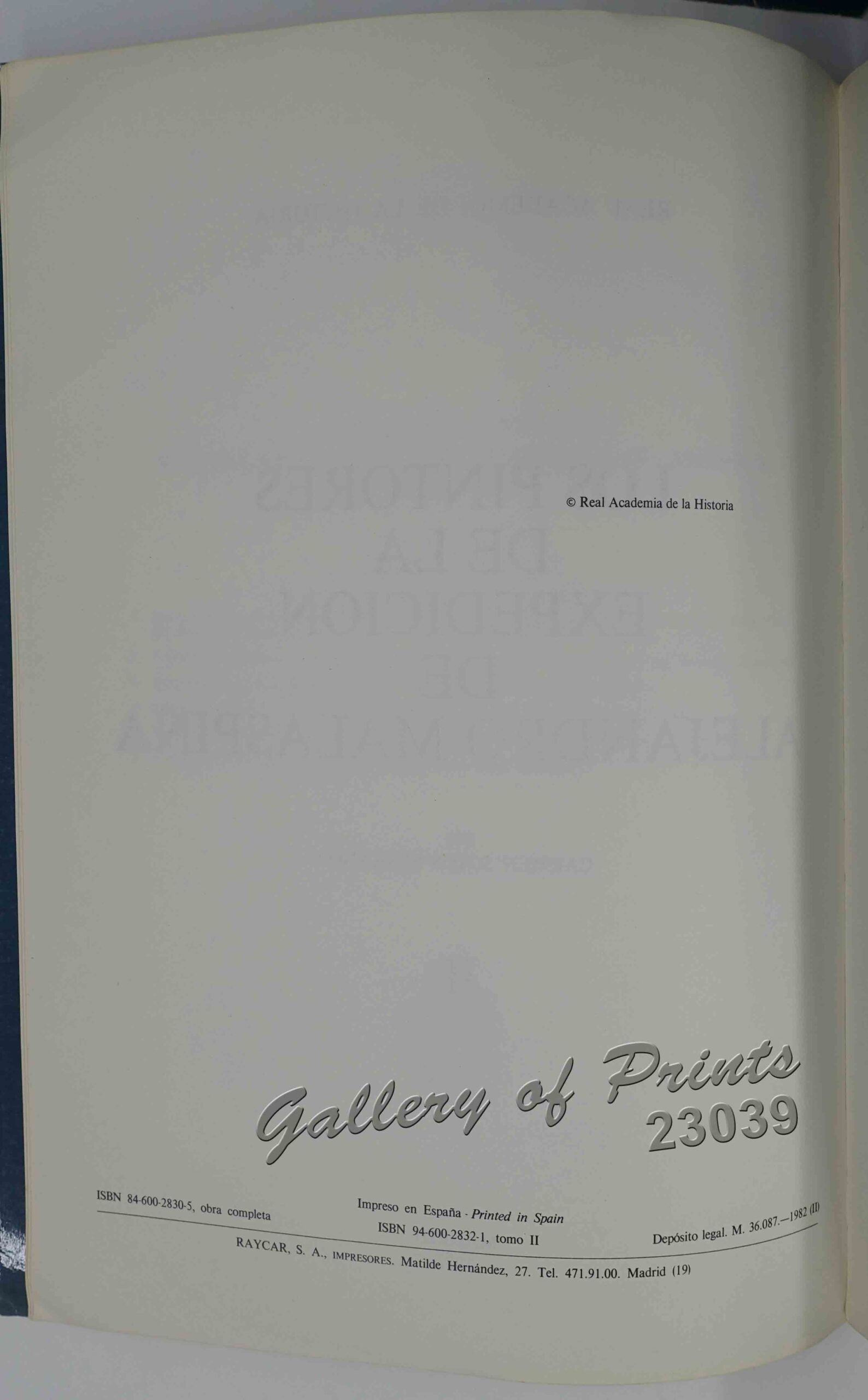The first volume relates the itinerary followed by the expedition, commenting on the scientific work carried out in each place. The second volume contains a catalogue of all the drawings and paintings of which the author is aware. 830 scientific drawings are reproduced and technically described, mostly in black&white, some in colour.