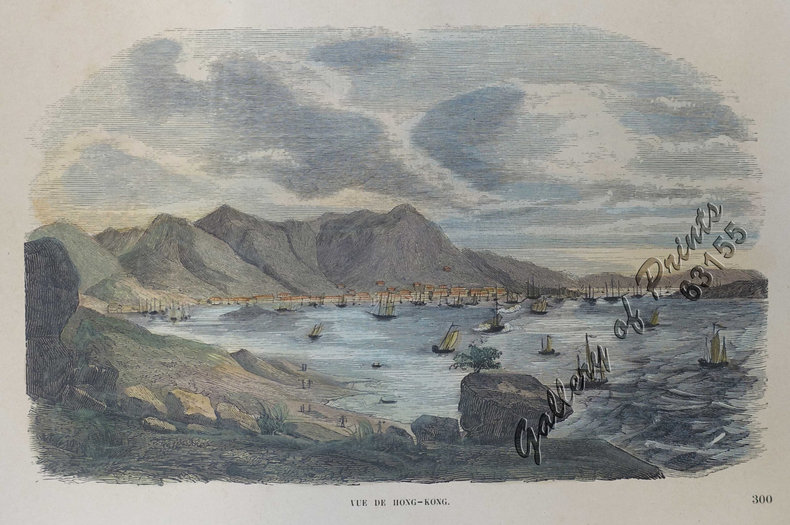 hand-coloured wood engraving view of Hong-Kong from ‘Voyages dans les deux océans Atlantique et Pacifique 1844 à 1847’, [Voyage in Two Oceans Atlantic and Pacific …].