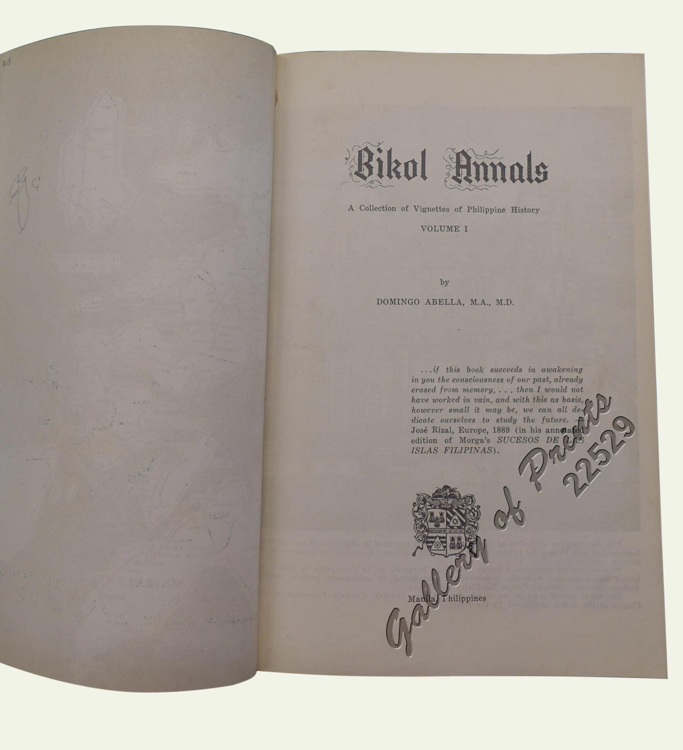 ![Bikol Annals. A collection of Vignettes of Philippine history. Vol. I. The See of Nueva Cáceres. [Naga City] - Image 3](https://galleryofprints.shop/wp-content/uploads/2020/08/jo22529-Abella-1954-Bikol-Annals-frontispiece-scaled.jpg)