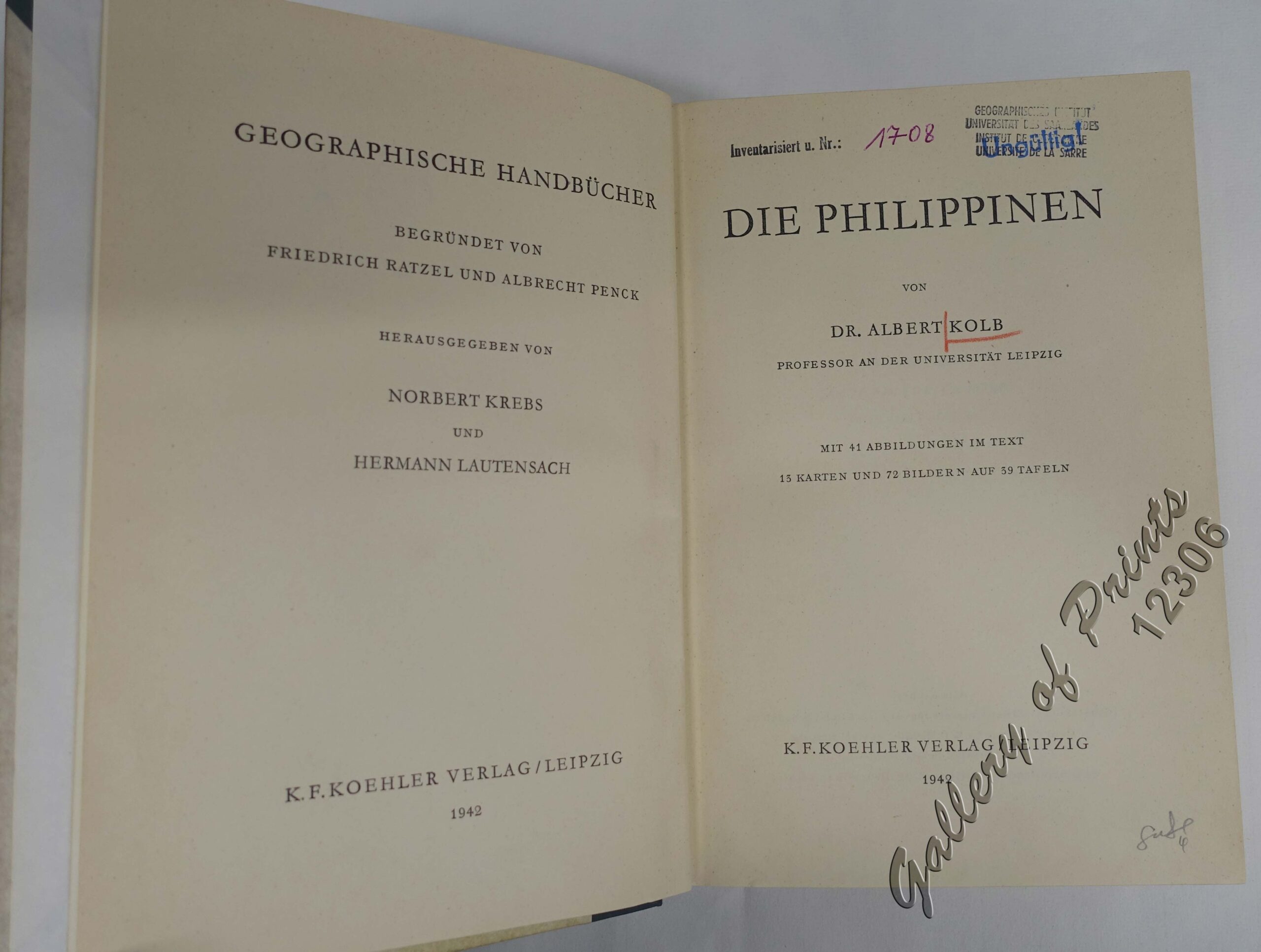 Kolb (1906-1990) then was a professor of the University of Leipzig. After WWII, he became Rector of the University of Hamburg.This is the most comprehensive Geographic Handbook of the Philippines in the German language todate and became the standard reference book for the next decades.