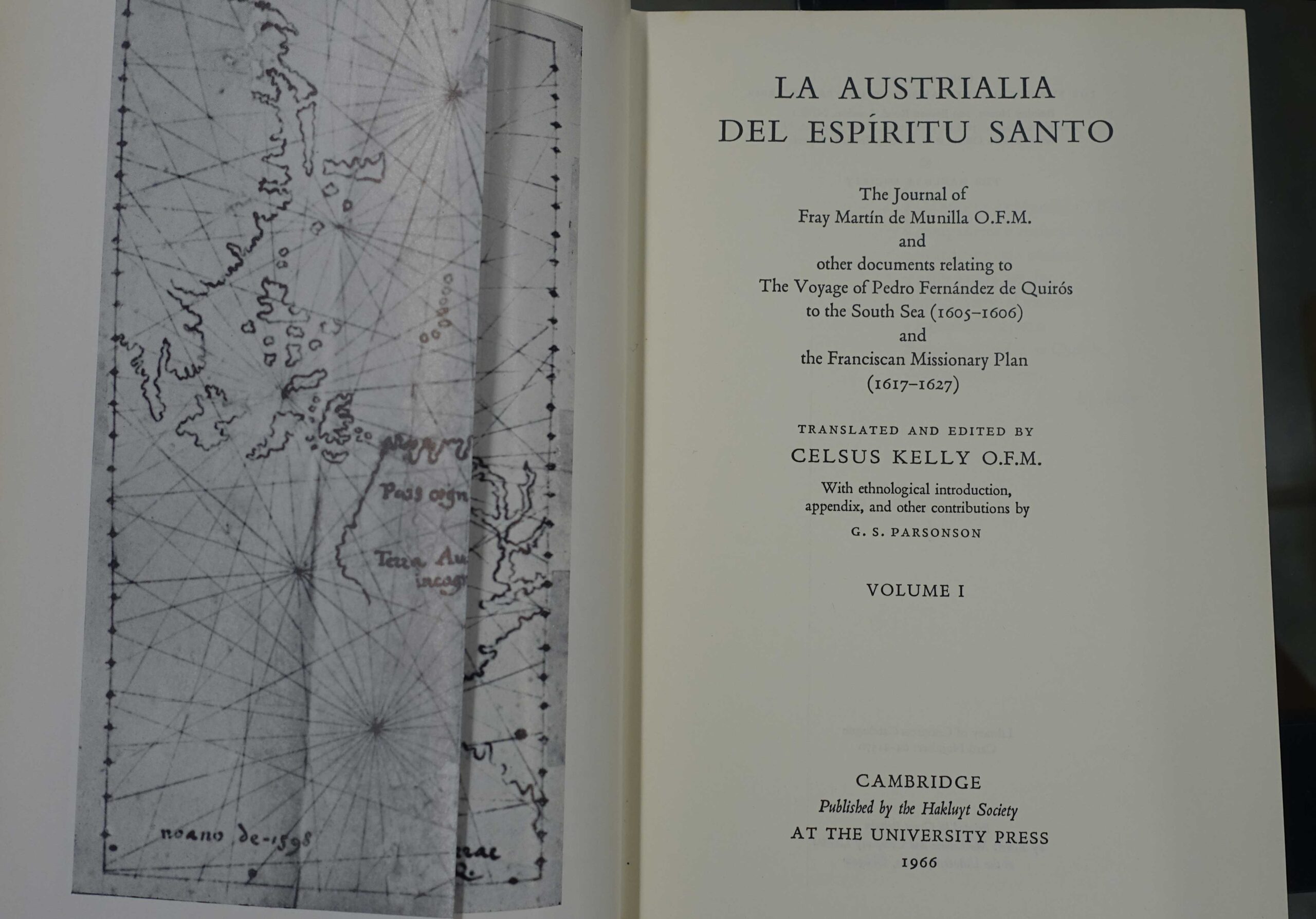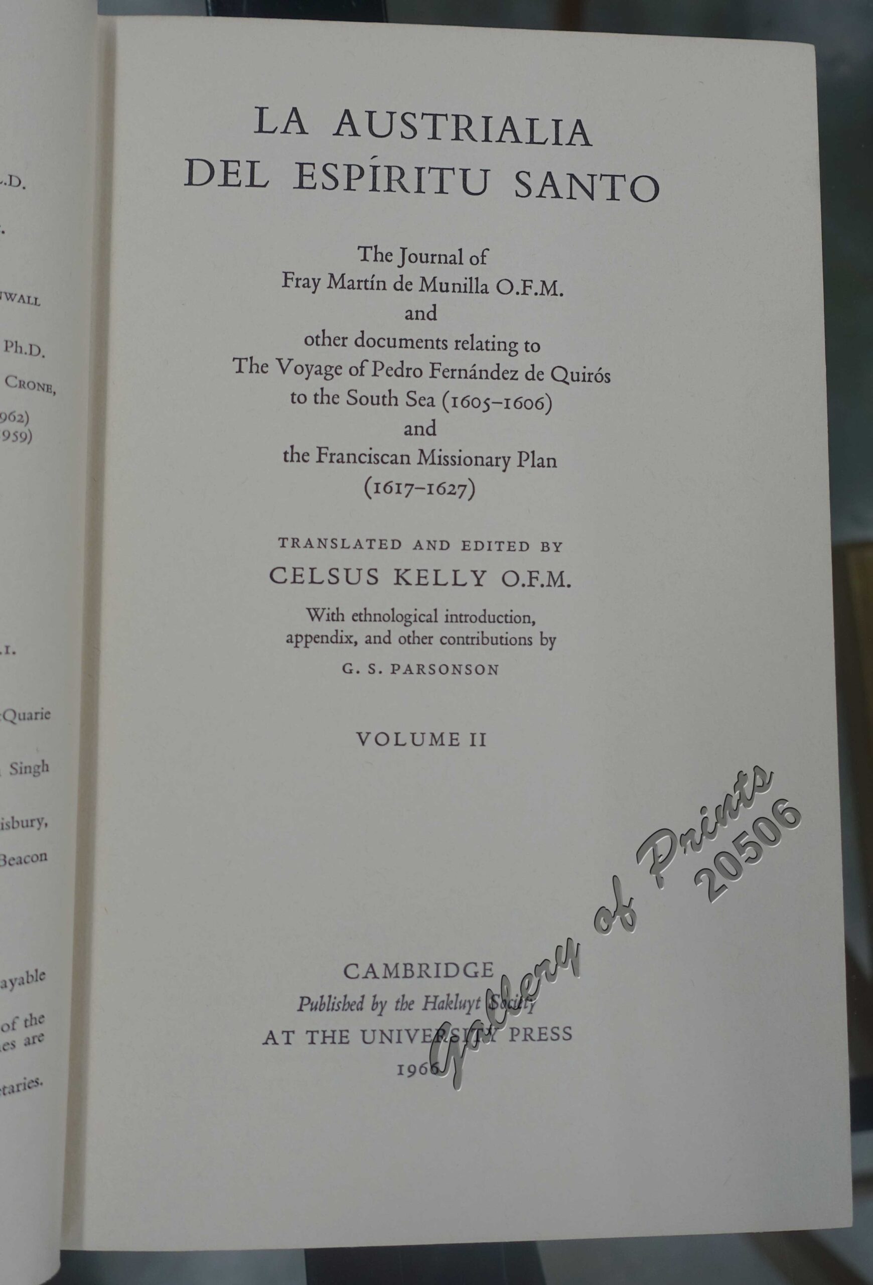 With ethnological introduction, appendix, and other contributions by G. S. Parsonson…The ‘Relación’ of Munilla, chaplain and vicar of the royal fleet and commissary of the Franciscans in the Quirós expedition, with an extensive introduction…The ‘Sumario Breve’ of Juan de Iturbe, followed by documents bearing on the preparations for the expedition, the voyage of Quirós, Quirós in New Spain, negotiations for another expedition, and the missionary plan. Two appendices, one by G. S. Parsonson.